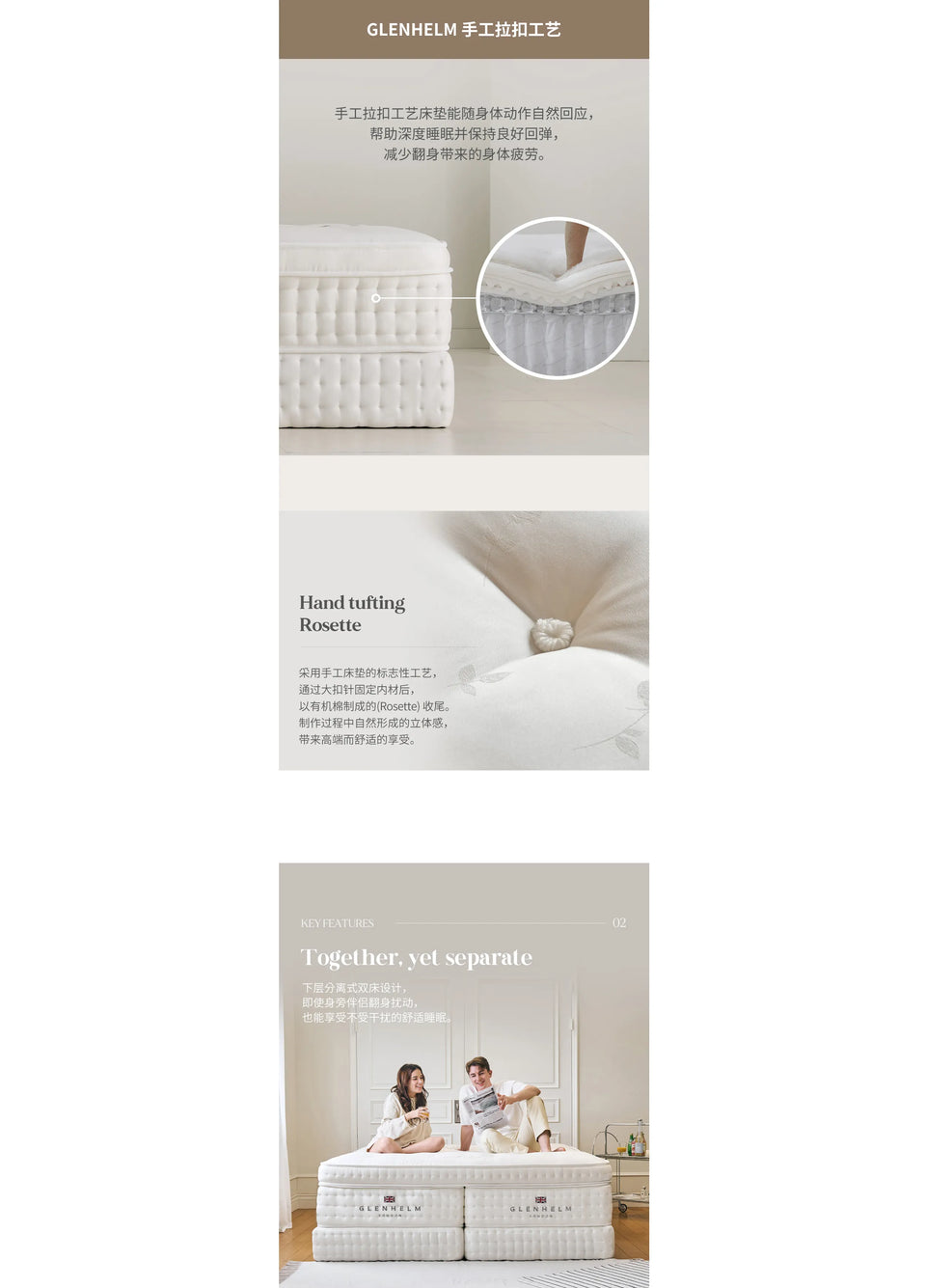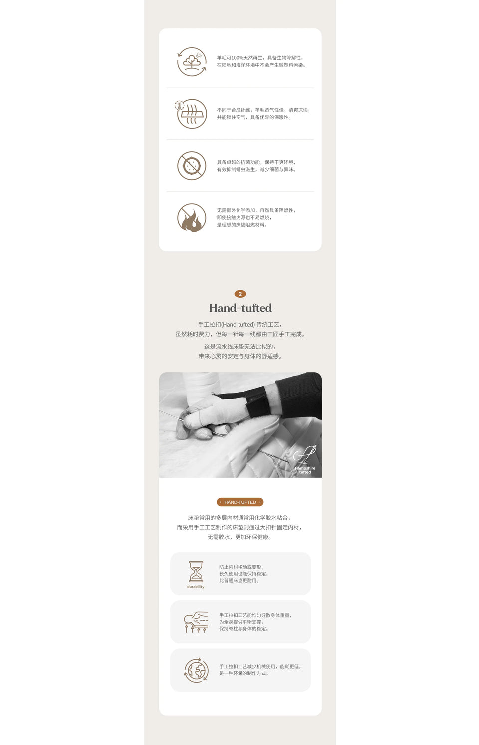 Hand-tufting technique delivers tailored body support and long-lasting comfort.