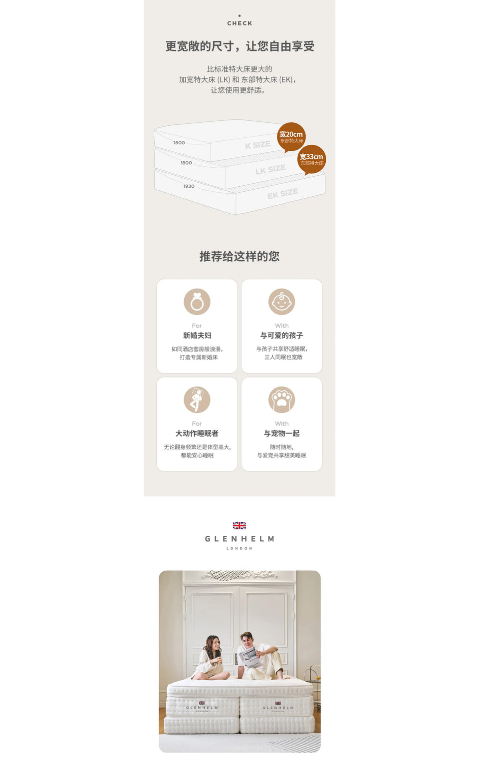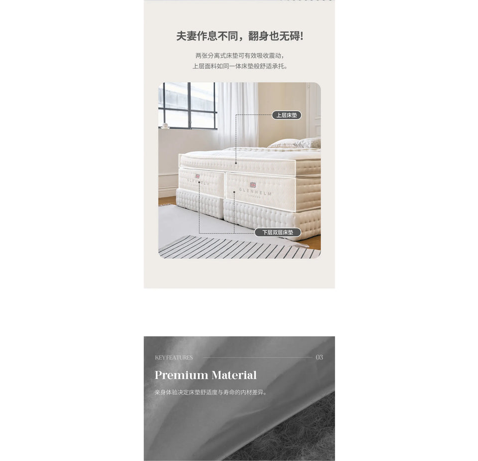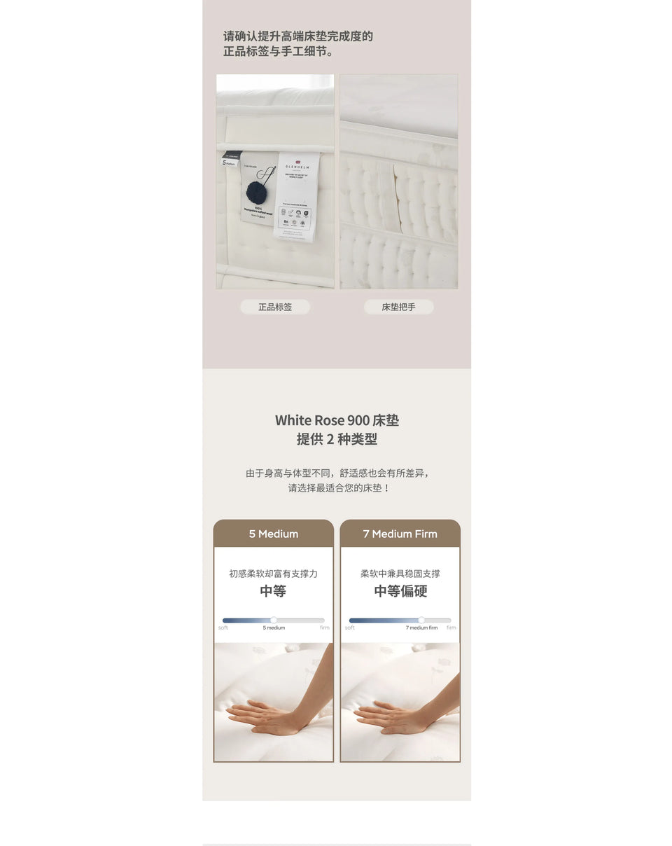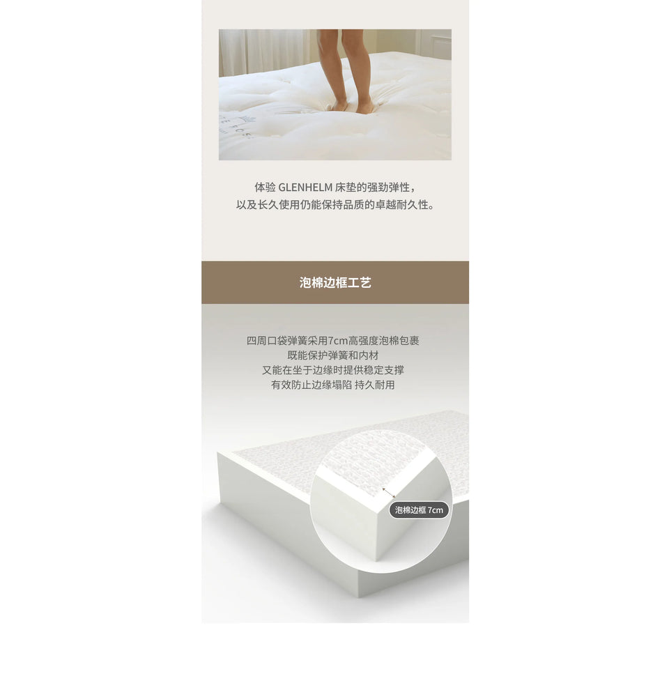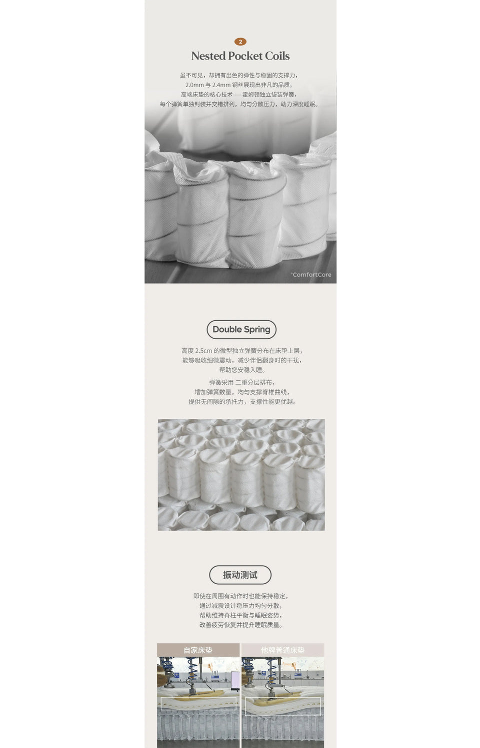 • Spring Unit: Individually pocketed coils – 2.0mm (Medium Firm) or 2.4mm (Firm)